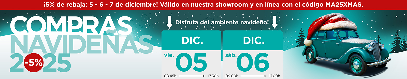 Fin de semana de compras navideñas: 5% de descuento en tu pedido online los días 5, 6 y 7 de diciembre de 2025. Utiliza el código MA25XMAS