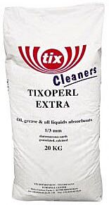 Les granulés d'absorption Tix Tixoperl Extra sont rapides et sûrs à utiliser. Toutes sortes de liquides (eau, huile et produits chimiques) déversés sur une surface solide sont immédiatement absorbés et retenus. Grâce au traitement thermique des granulés d'absorption de Tixoperl, ils restent durs même en cas d'absorption complète. Le Tixoperl extra, avec sa granulométrie relativement importante, est un produit qui peut être utilisé avec succès à l'intérieur comme à l'extérieur pour toutes sortes d'applications d'absorption.