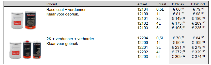 NOVOL biedt de oplossing voor uw project van start tot finish. U merkt het vakmanschap in elke fase van de reparatie met de premium kwaliteit in afwerking tot het verfproces: van anticorrosieve bescherming, plamuur, basis/grondlaag, kleur, blanke lak met toepassing en invoering van speciale additieven. Vraag aan de hand van de fabriekskleurcode van uw project het 100% correcte premium kleur aan.